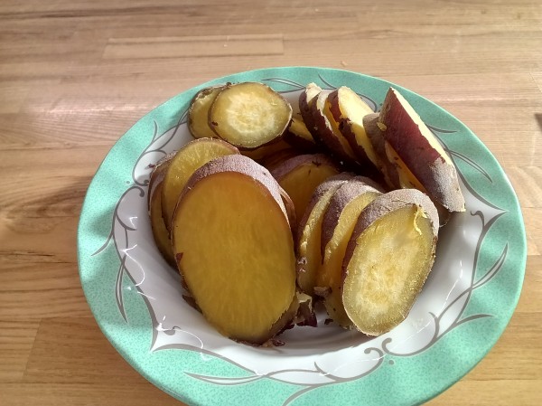 まずは茹でたさつま芋を試食してみましょう〜(๑´ڡ`๑)