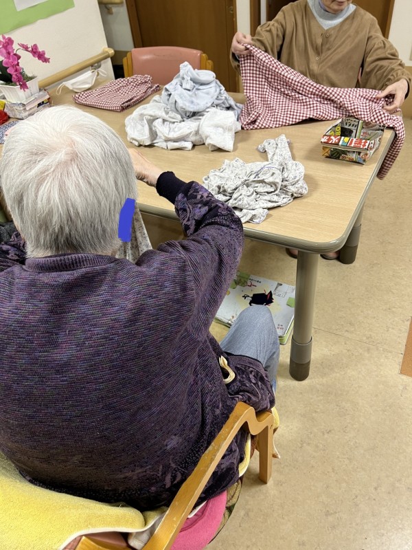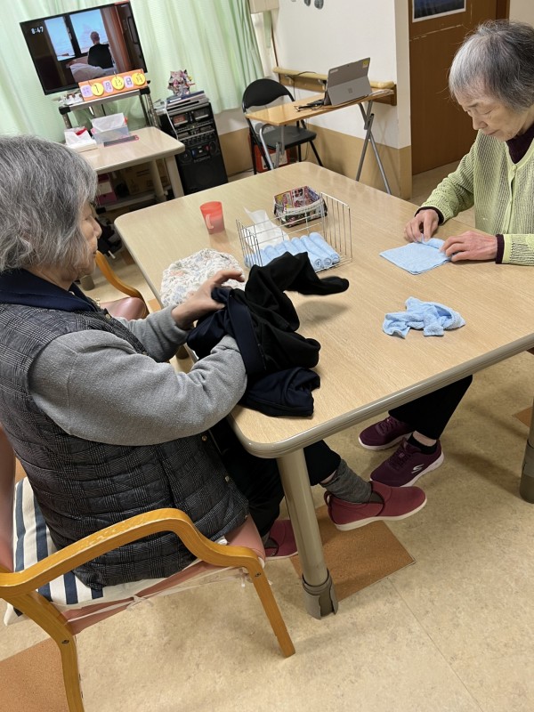 今回は2階にて、おしぼり巻きや洗濯物たたみのお手伝いをしていただきましたのでその様子をご覧ください。