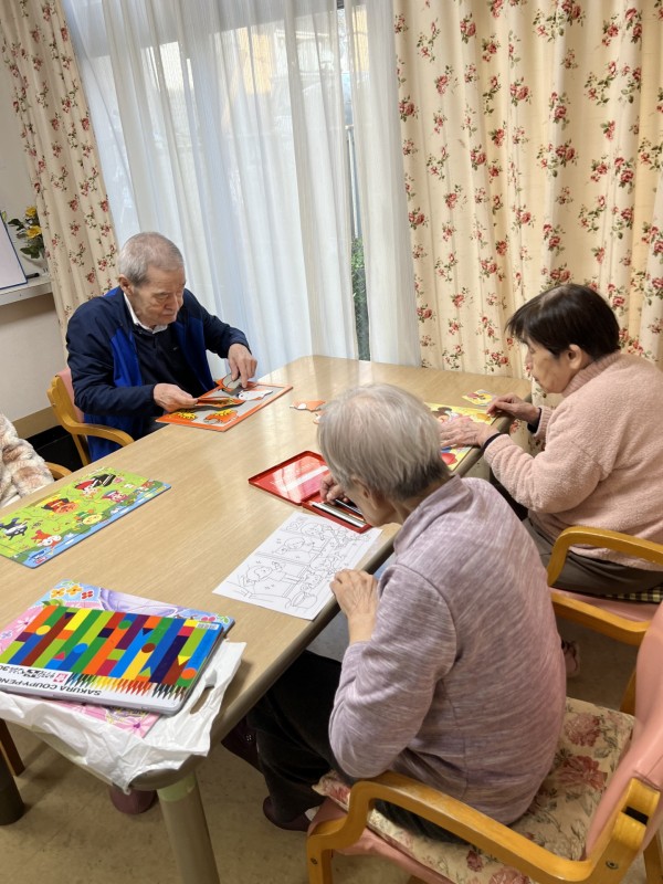 今回は1階での塗り絵やジグソーパズルのレクリエーションのご様子をご覧ください。