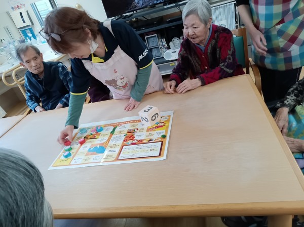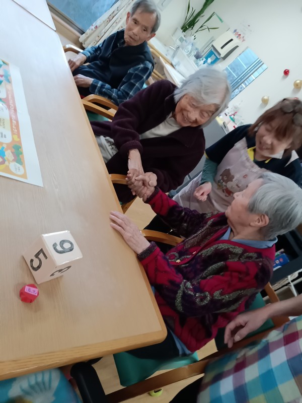 サイコロを振って進むたびに「歌を歌う」「昔の思い出を語る」といったお題が待ち受けていて、笑い声があふれる時間になりました。