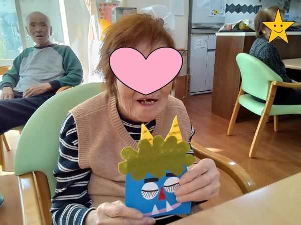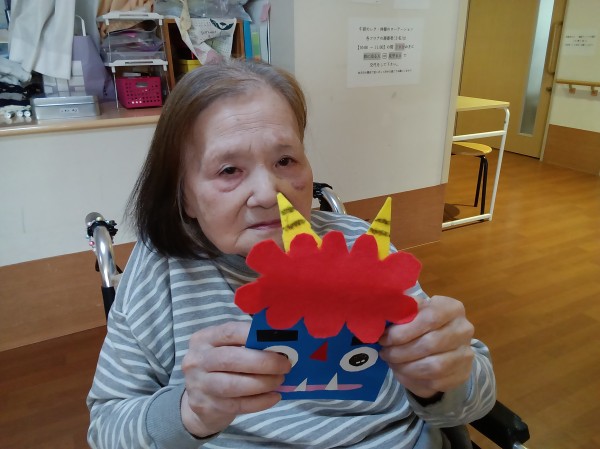 鬼のお面が完成しました‼ あとはお豆の準備ですね ‼ 節分の日がすごく楽しみです♪