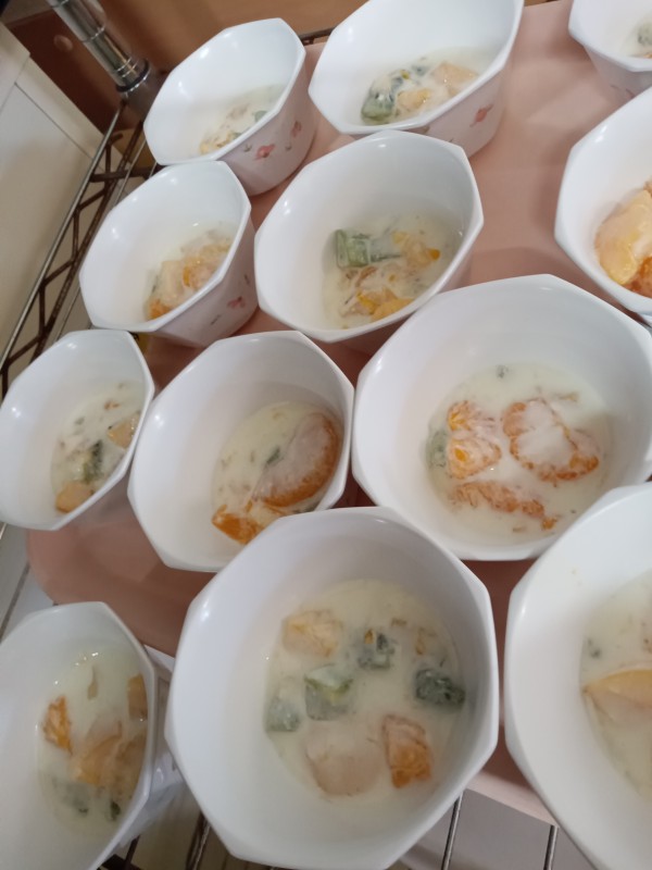 女性チームは爽やかなヨーグルトをデザートに用意し、「さっぱりして鍋の後にぴったり」と好評。