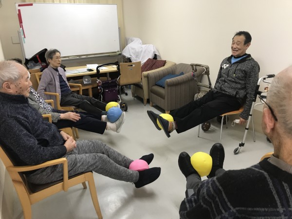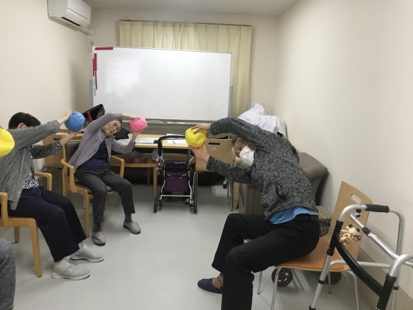今回のレッスンではフニャフニャのボールを使用して行っております。