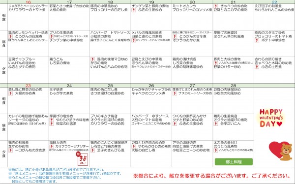 本日は2月の献立表をご紹介したいと思います(*'▽')