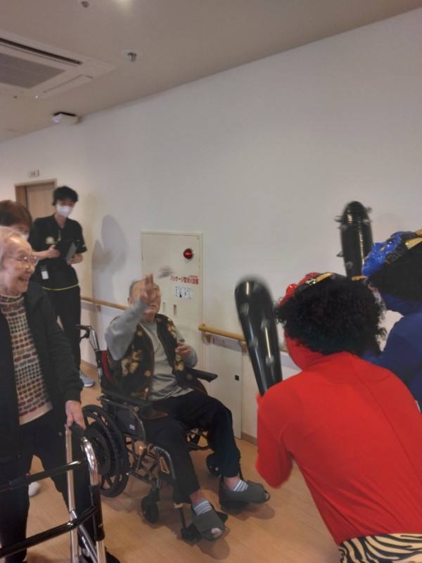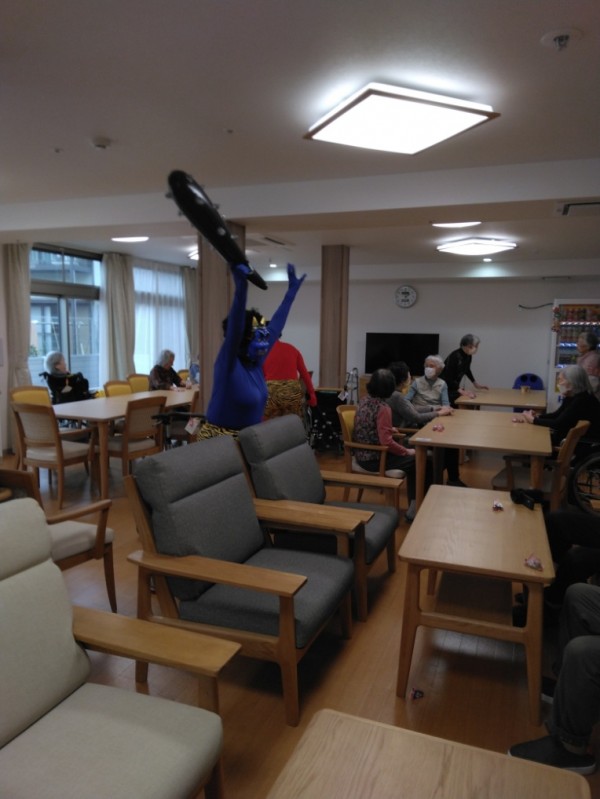 普段は2階フロアで行事レクを行っていましたが、外から鬼が入りたかったため1階にしました。