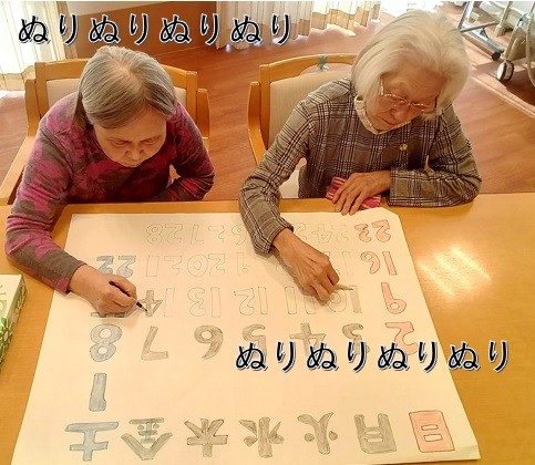 今回は 当ホームの ぬりえ職人による 2月のカレンダー制作風景をご紹介いたします
