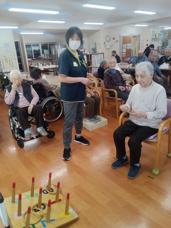 今日のレクは、輪投げです。