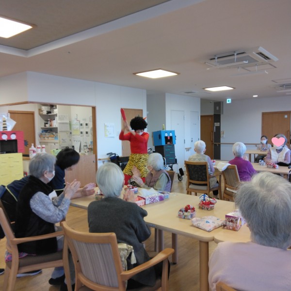 豆まき(豆はまいていませんが)もひと段落、これからおやつの時間にしましょう。お疲れ様でした。人型鬼も、ロボット鬼もお疲れ様です。