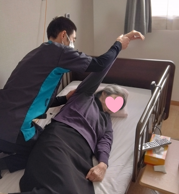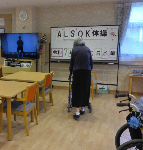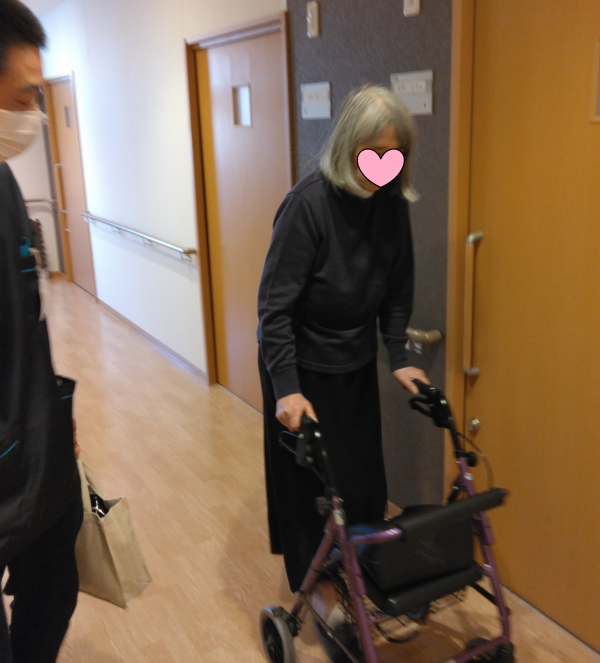 入居された2年前はベッド上での生活がほとんどでしたが、現在は歩行器を使って歩くことができるほどになりました。