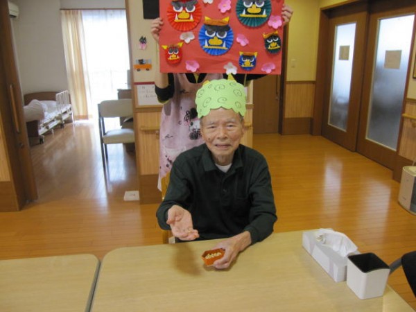 「かわいいわねぇ」「豆まきしたから?」「お部屋に飾ろうかしら…」と、ご利用者の皆さんから好評でございました!