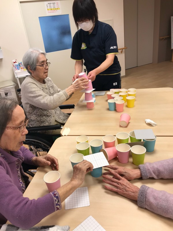本日の午後のレクリエーションは「紙コップタワー」作りに挑戦しました(*^▽^*)