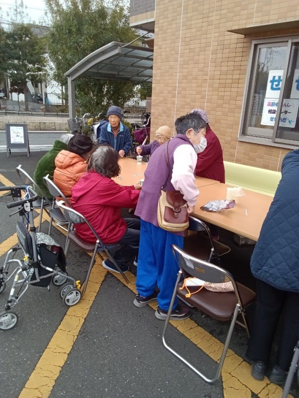 特に寒かったこの日、ボランティアの方が何飲みたいとお声がけをし、温かいコーヒー、お茶を飲み、皆さんで温まることができました。