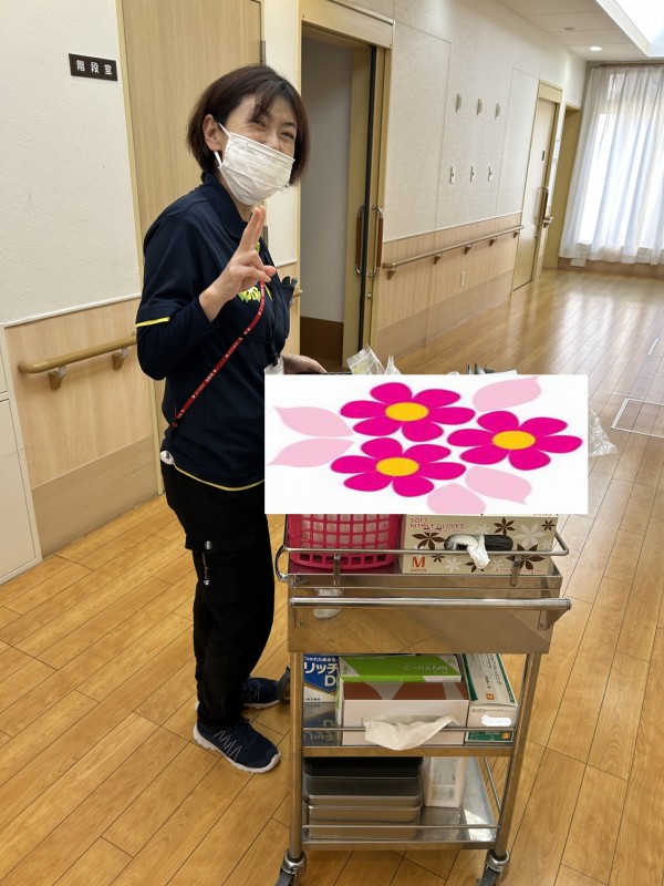 処置台を押しながら、処置が必要な方の処置を1階~3階まで1人ずつ回ります。