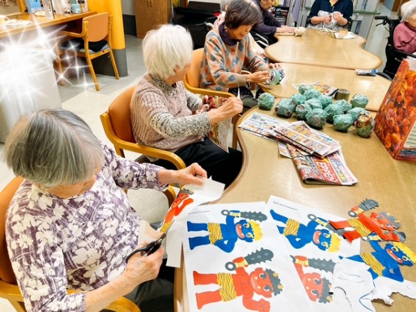鬼の紙と広告の紙を丸めた物が沢山・・・