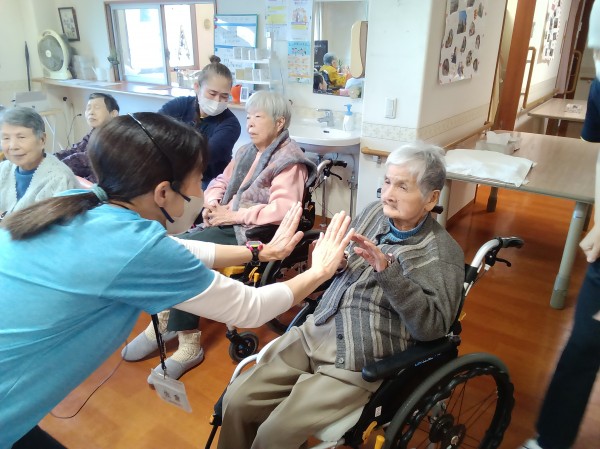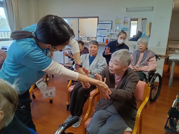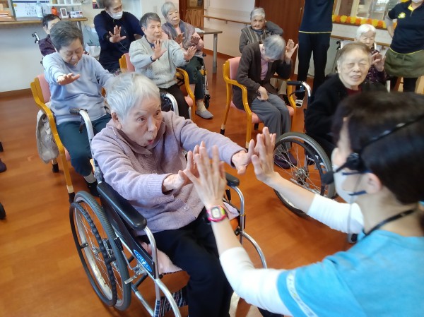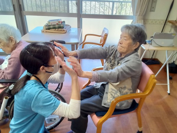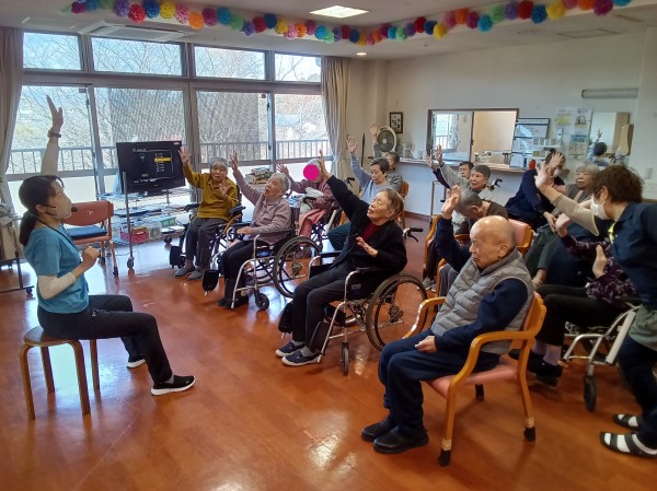 普段なかなか体操に参加できない利用者様も声掛けに合わせて手を動かされていたのには、職員もビックリでした(◎_◎)