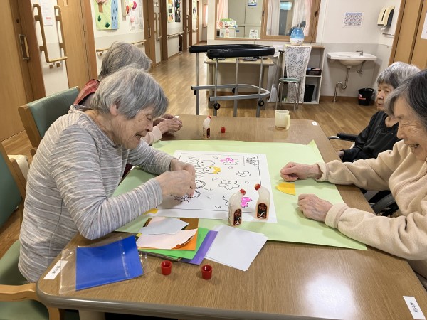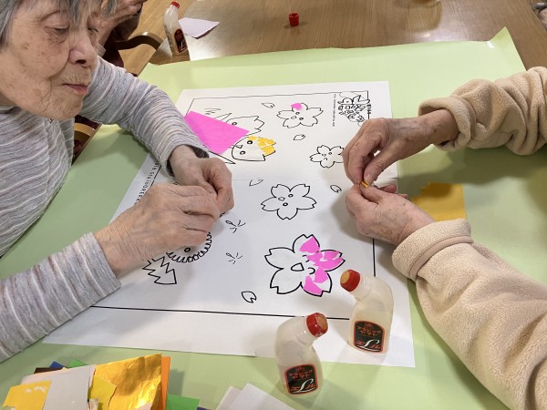 「ここはこの色がいいかね」とお話しをしながら一生懸命貼り絵をされました。