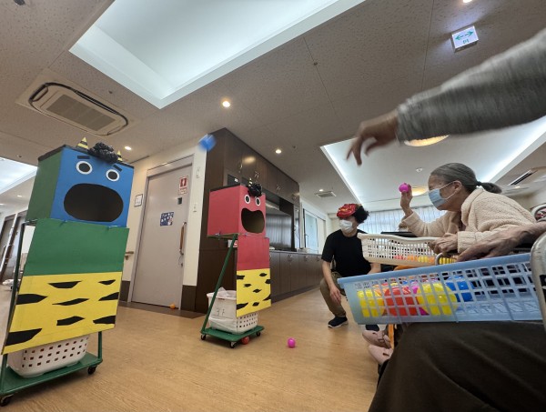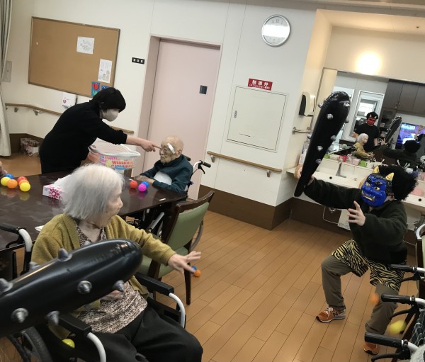 赤鬼、青鬼の口の中にたくさんボールを入れる鬼退治ゲームです( ^o^ )