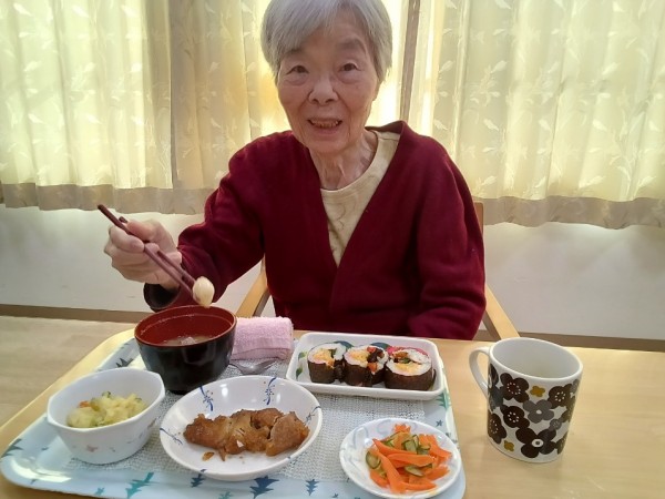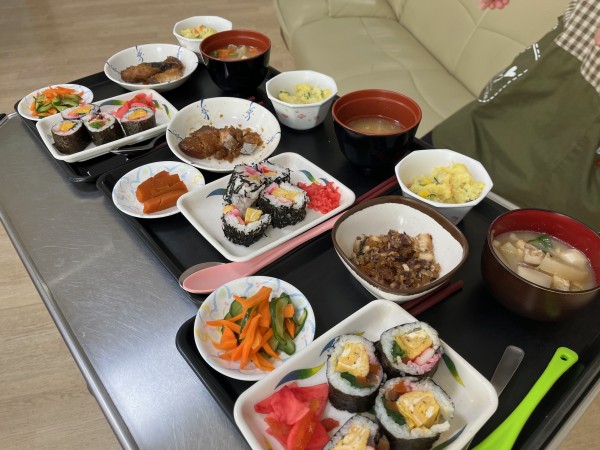 メニューは皆さまと手作りした太巻きと、お魚、かぼちゃサラダ、漬物、豚汁です!
