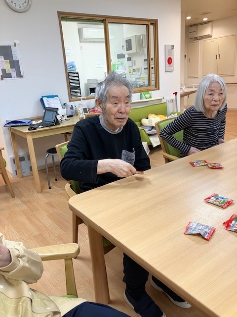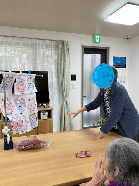 今年は2月2日、利用者様が書いてくれた可愛らしい鬼をボード式にし豆を当ててもらいました。