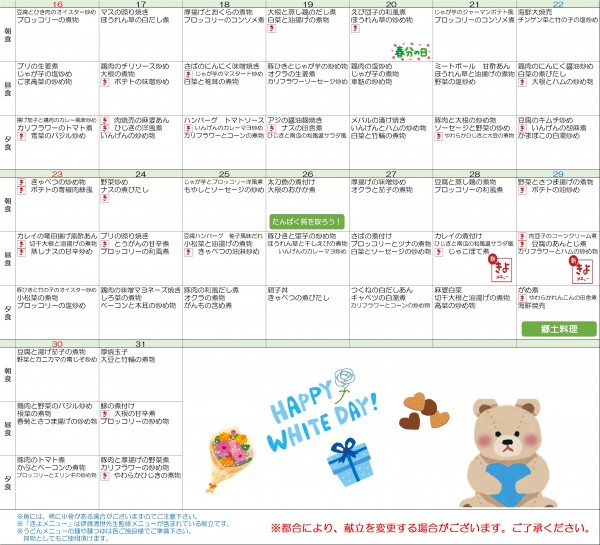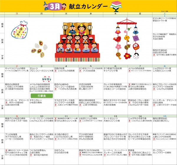 本日は、3月の献立表をご紹介したいと思います(´▽`)
