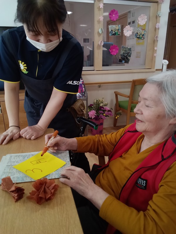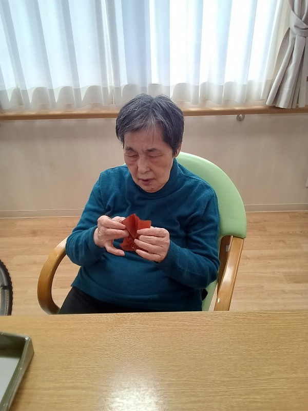 花紙をクルクルと丸めたり、花紙を広げてくれてます!