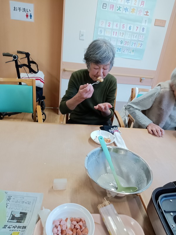 利用者様が「おいしい!」と次々にたこ焼きをパクッ!