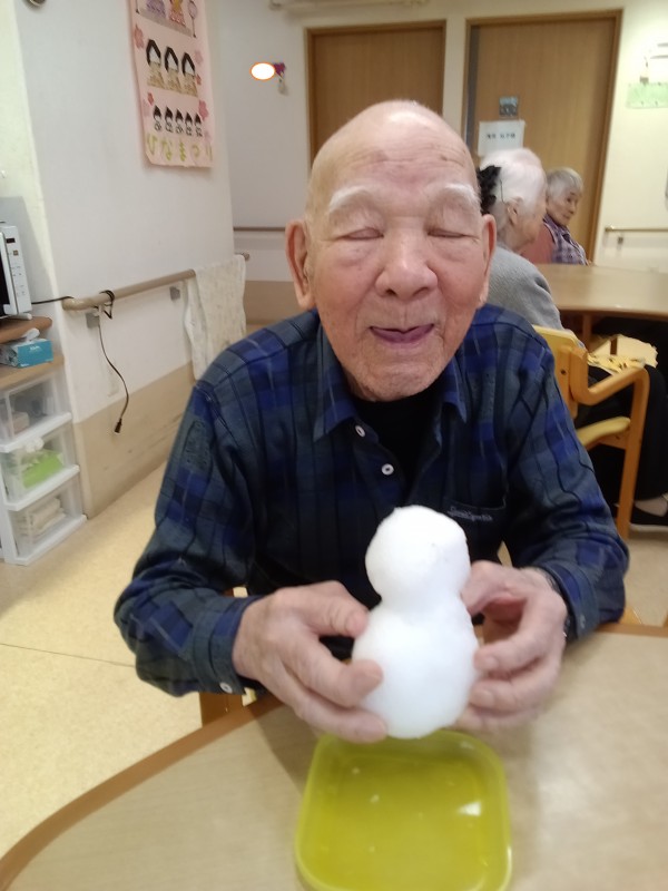 早速、職員が庭に出て雪ダルマ作りを始めました♡