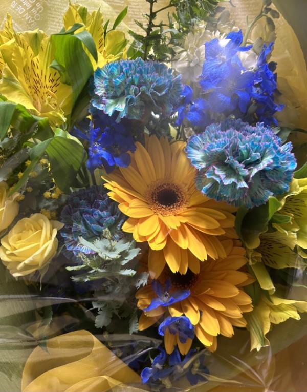 夜勤中に準備!青と黄色のお花、とっても綺麗です♪