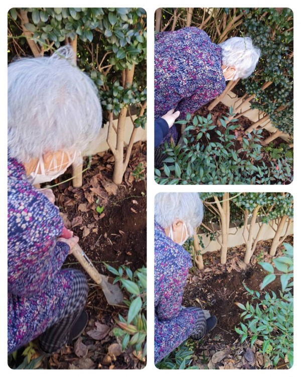 皆さんが見守る中、職員はせっせと土を耕しています。