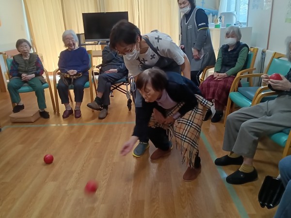 こんにちは! グループホームみんなの家・川崎新百合ヶ丘の介護ブログです。先日開催致しましたボランティア活動のボッチャの様子をご覧下さい。今回で7回ほど開催して皆さん要領を得て高レベルの戦いになりました、試合後にはそれぞれのチームにメダルの授与があり、利用者様も喜ばれていました。