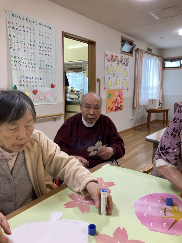 入居者様で桜の貼り絵をしました。