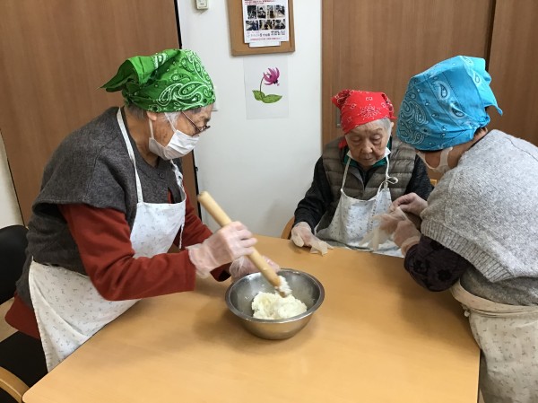 炊いたご飯は温かいうちにつぶしていきましょう☆
