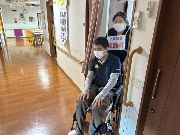 皆さんには事前に避難訓練を実施する事を伝えて、夜間を想定してベッドで待機してもらっていました(*^^*)