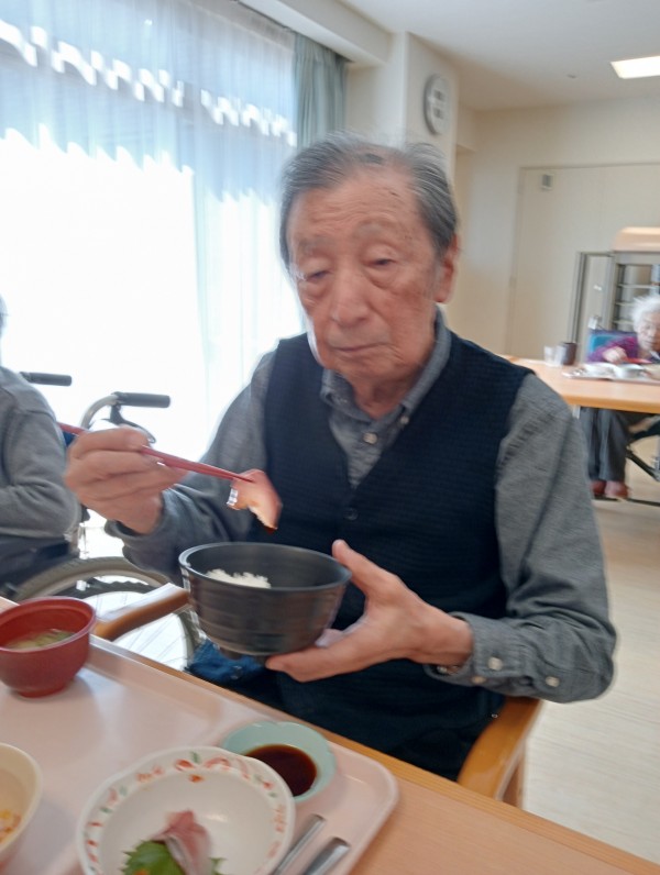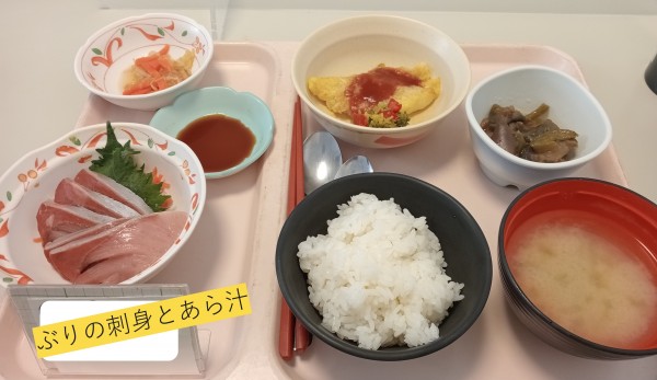 昼食にぶりのお刺身とあら汁がついていよいよ実食です(*''▽'')