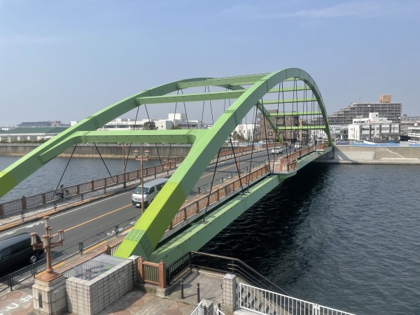 目の前には鮮やかな緑色の小台橋、その下を流れる隅田川がキラキラ˚✧₊⁎輝いていました。