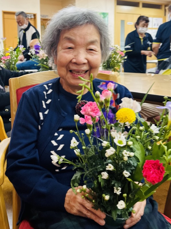 特にポンポンマムという品種の菊がアクセントになり、とっても可愛らしい仕上がりとなりました。