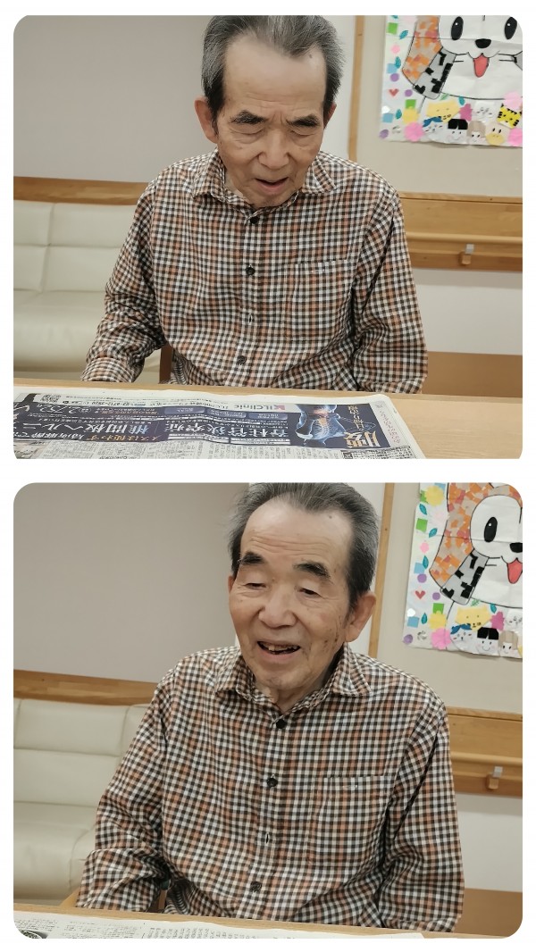 新聞の広告をご覧になられ腰痛はないなーっと笑顔のお父様✧♡ฅʕ •ﻌ• ʔฅ♬*゚
