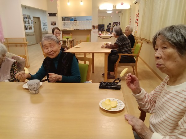 入居者様に剥くのをお願いすると、するする~とあっという間に剥いて下さいました!