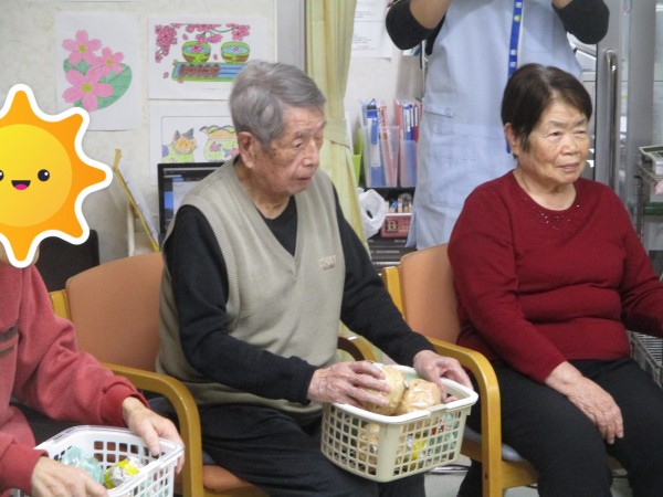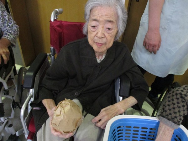 他の階の入居者様たちも一緒に即席の籠に球を入れて皆様で楽しい時間を過ごしました♪