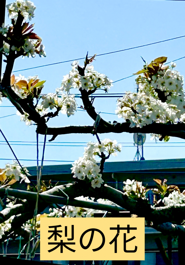 稲城市と言えば…梨!!梨の白い花、さやえんどう、マーガレット、タンポポ、暖かい日差しに照らされ