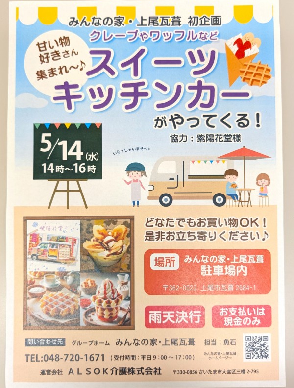 クレープ&ワッフルのキッチンカーさんが上尾瓦葺に来てくださいます☆