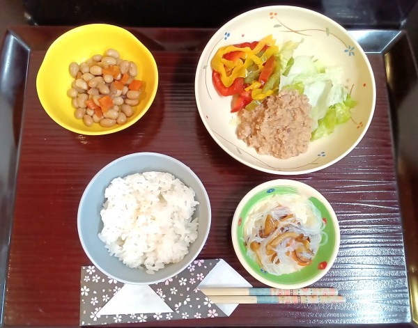 五穀ごはん 肉みそ野菜 大豆五目煮