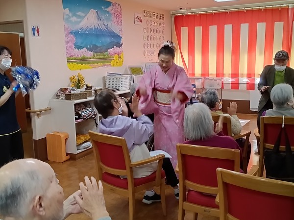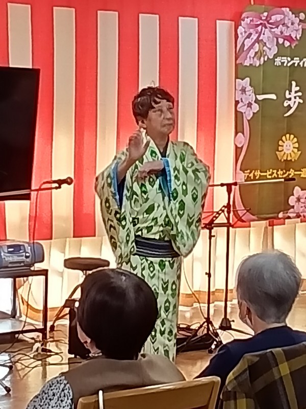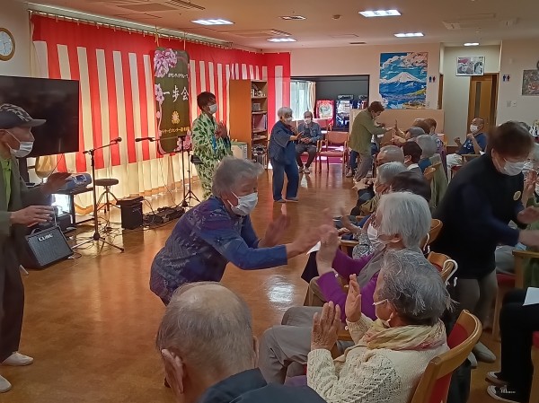 その他、「スバル」「あざみの歌」を聴かせて下さいました。その盛り上がりがとてつもなく、ご利用者様・「一歩会」さん・職員皆で踊りながら応援しました(笑)!