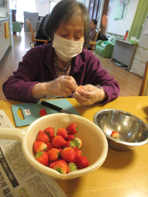 ホットケーキに添えるイチゴも切って頂きました(^^♪