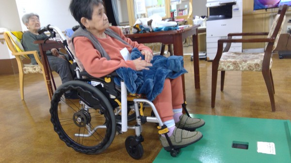 車いすの方は、毎回の測定時前に車いすのみの重さを測り、体重を測った後に、車いすの重さを引いています。
