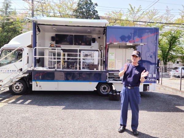大規模防災訓練では、起震車を呼び地震体験を行ないました。…地震体験車、かっこいい(´ω`*)