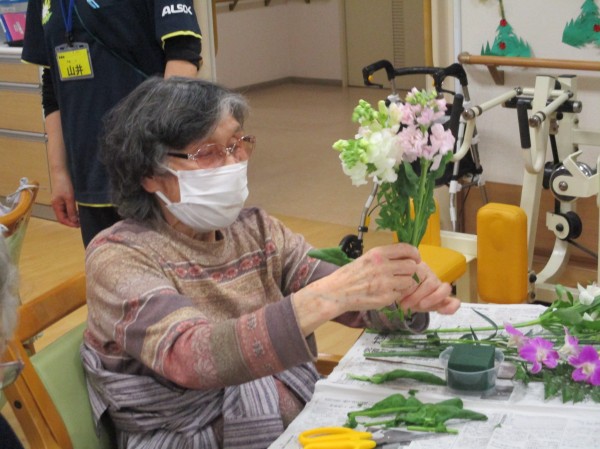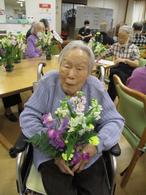 開始前から並べられた綺麗なお花を前に、利用者様やや興奮気味のご様子(笑)