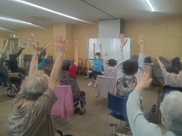 岡庭先生はご存じの方が多く、座ったまま、ゆっくり体を動かす体操で、皆さんリフレッシュされていました。