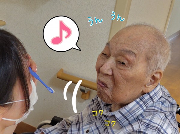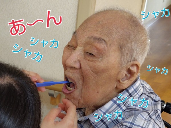 おじぃさま、食後の歯みがきタイムです!
