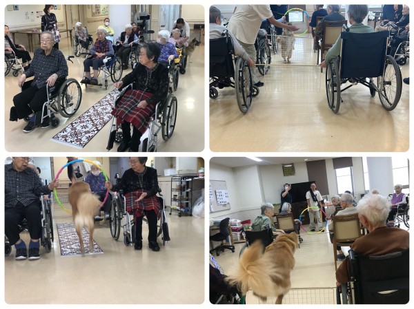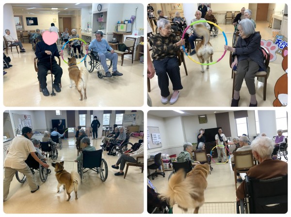 棒やフラフープをジャンプ!職員も入居者様も、かっこいい五郎太君から目が離せず…!